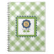 Caderno Espiral Xadrez Floral Verde Azul Monogramado