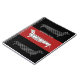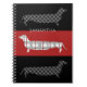 Na moda e notebook personalizado e peculiar para amantes de cães com cães de salsicha de padrão xadrez alongado em faixas vermelho e preto em negrito.