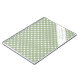Este caderno tem um fundo xadrez verde salgueiro e branco com um retângulo branco delineado por uma borda fina. O texto interno é estilizado com uma mistura de letras cursivas e fontes simples, criando um visual limpo, clássico e elegante.