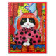Este é um tributo ao artista Yayoi Kusama, bem conhecido por sua nova tomada de bolinhas, retratado aqui como um gato fofo. Você pode personalizar a cor de fundo deste notebook se quiser. Ele é mostrado aqui em vermelho, mas ele também parece excelente em outras cores. Esta imagem está disponível em outros produtos da minha loja Zazzle. Um presente de excelente para um amado.