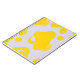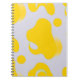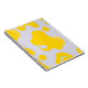 This notebook features a lively pattern of organic yellow shapes scattered across a clean white background, creating a playful yet contemporary abstract aesthetic.