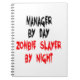 Este design de texto com a citação "Gerente pelo Dia Zombie Slayer by Night" em escrevendo vermelho de sangue é perfeito para qualquer gerente que ama zombies.