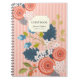 Uma ilustração bonita decora a esta Primavera ou o jardim que do verão o livro de hóspedes temático do casamento que seja decorada com as flores do abricó e do ranúnculo do coral, cora e pica as flores de cerejeira, os botões florais azuis e as hortaliças assorted em um pêssego do abricó e em um fundo branco do teste padrão da listra. O design temático do jardim na moda e contemporâneo é perfeito para o primavera, o verão, ou casamentos exteriores.