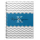 O caderno espiral do monograma feito sob encomenda cinzento moderno do teste padrão de ziguezague da viga caracteriza um acento da cor da cerceta. Aperfeiçoe para um jornal, tomando notas, trabalho, escola e casa. Faz um grande presente para todas as ocasiões. Clique "personalizam-no!" abotoe para mudar o tamanho do texto, cor de texto, estilo de pia batismal, adicione o texto e o mais!