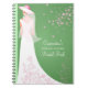 Verde prudente e branco do primavera com os acentos cor-de-rosa do coração que wedding planos e organizador da lista -- pouco livro da noiva bonito, romântica, e conveniente das lista e das notas. Personalize o nome de noiva-à-está, ou adicione seu texto feito sob encomenda e criar seus próprios cadernos originais do espiral-limite - aperfeiçoe desejando bem presentes, livro de hóspedes do chá de panela, favores do convidado, ou outros acessórios. Este design popular pode facilmente ser personalizado para a empregada doméstica ou a matrona da honra, as damas de honra, e os assistentes do casamento. O clique "PERSONALIZA-O" para editar o fundo e o estilo ou a cor de pia batismal. Personalização feita sob encomenda disponível para combinar selos postais. cartões, ímãs outros presentes em cima do pedido. © Teri Francis da ilustração