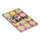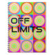 Caderno com círculos coloridos e "PROIBIDO" na capa