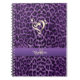 Caderno roxo personalizado do coração da música do leopardo. Impressão animal do leopardo roxo rico com um coração do clef baixo do triplo da música do marfim e do ouro. Preencha seu nome e a inicial no alerta para personalizá-lo de qualquer maneira e personalizar gosta. Um grande presente para seu músico favorito ou amante roxo musical do leopardo.