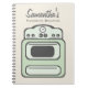 Um caderno da receita que caracteriza uma ilustração de um fogão verde inspirado retro. Personalize com seu nome nas cinzas.