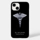 Design profissional elegante para fins médicos: símbolo precioso prateado Caduceus em fundo preto. Perfeito para qualquer negócio relacionado a cuidados de saúde, como consultório médico, clínica ou hospital. Para funcionarios hospitalares, médicos, enfermeiras; elegantes, nobres e elegantes.