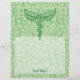 cobra caduceus solteiro com folhas de menta sobre fundo verde claro sem costura. Texto personalizado.