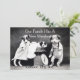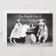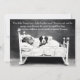 Cães de vintage vestidos de pessoas e filhote em escala de peso. O dorso tem um cachorro jovem no berço com um novo cachorrinho.