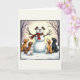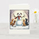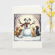 Cães bonitos Cartão de Natal Snowman Puppy Inverno