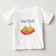 Um cachorro marrom giro feliz relaxando na sua cama de cachorro e o texto preto diz "Cachorro Rock!" em nossas camisetas, canecas, mousépias, botões, cartas e muito mais!