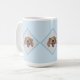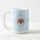 Aproveite a sua bebida preferida nesta caneca... com três caras sorridentes... descansando em um fundo de diamante azul.