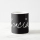 Canecas conhecidas personalizadas para a família inteira criada "giz branco em um estilo no conselho preto". Em toda a fêmea nomeada canecas, há um coração branco colocado sobre "mim". Se seu nome não me tem "" na soletração, esta imagem do coração pode ser removida ou simplesmente ampliado e colocado em outra parte na caneca.