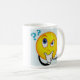 A caneca engraçada do ponto de interrogação da cara lê Hummm…