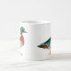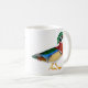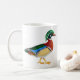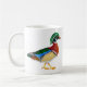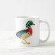 Uma caneca de café para amantes das aves aquáticas, caracterizando um pato de madeira em toda sua glória colorida.