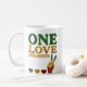 Uma caneca de amor inspirada na Jamaica, expressando paz e amor para todos. "Um Amor" é uma frase que encapsula a ideia de amor universal, unidade e harmonia entre todas as pessoas, independentemente de diferenças ou divisões.