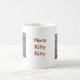 Caneca decorada com texto do gatinho parado e "aqui kityy" do gato