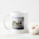 Fred que o pato da borracha caracteriza nesta caneca cercada por monstro. Os giftware bonitos e subtis originais projetam usando a manipulação da cor da fotografia e da imagem por Fred contra o mundo.