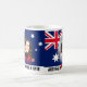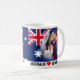 Príncipe William & princesa Catherine -- Duque e duquesa de Cambridge -- são o rei futuro e a rainha de Austrália. Esta caneca tem dois grupos de imagens do casal real; um é o beijo real famoso do casamento. A bandeira australiana decora o fundo. A caneca diz VONTADES dos amores de AUSTRÁLIA & KATE.
