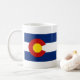 Características deste design da caneca a bandeira de Coloradan em um lado e um mapa de Colorado no outro.