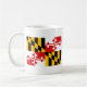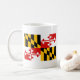 Características deste design da caneca a bandeira de Maryand em um lado e um mapa de Maryland no outro.