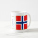 Um lado desta caneca indica a bandeira norueguesa quando o outro caracterizar um mapa do país. Recorde memórias afeiçoadas de Noruega quando você apreciar uma bebida de relaxamento. Disponível em diversos agrida ou em estilos da caneca para cerveja.