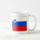 Um lado desta caneca indica a bandeira eslovena quando o outro caracterizar um mapa do país. Recorde memórias afeiçoadas de Slovenia quando você apreciar uma bebida de relaxamento. Disponível em diversos agrida ou em estilos da caneca para cerveja.