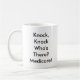 Aprecie esta caneca da sátira que caracteriza um esboço da caneta do idoso que bate na porta. Bata a batida, cujo lá? Achado de Medicare este design em um número outros de artigos que incluem mousepads, t-shirt, etiquetas e mais
