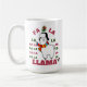 Calma com esta caneca festiva de Natal de lhama apresentando o clássico design do "Baby It's Cold Outside"! Feita de cerâmica segura para máquinas de lavar louça para uso diário. Perfeito para as manhãs de Natal ou confortáveis de inverno. [Texto da ALT: caneca de férias engraçada com "Baby It's Cold Outside", copa de café de Natal cerâmico para o inverno]