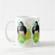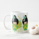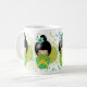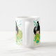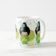 Café Bonecas de Kokeshi na caneca verde e amarela