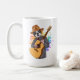 Café Boston Terrier tocando caneca de violão acústico