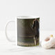 Um garanhão aciganado bonito de Vanner decora sua caneca de café para ajudar a começar sua manhã fora do direito.