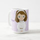Esta menina bateu um marco miliário importante em sua viagem espiritual. É seu dia da confirmação e está feliz levantar-se e ser contado um cristão novo. Esta caneca é uma celebração de sua realização assim como é uma lembrança de seu dia importante.