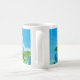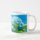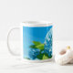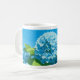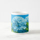 Café caneca adornada com drangeas azuis de arte pixel
