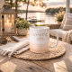 Design de tipografia neutra de praia em branco e taupe com uma base de bloco de cor ampla com letras costeiras serifadas. Estilo costeiro moderno para cozinhas de casas de lago, cantos de café da manhã em madeira clara e rotinas de café da manhã à beira-mar que buscam contraste limpo e detalhe refinado da costa.