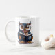 Uma caneca com coruja de leitura de livros com óculos design.