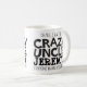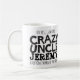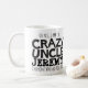 Caneca preta do slogan do texto do tio louco. Lê oh sim, eu sou o tio louco Jeremy que todos o advertiu aproximadamente. Ou personalize com seu próprio nome. Design de texto por Sarah Trett para www.mylittleeden.com no zazzle.