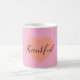 Uma caneca limpa e significativa com um design de coração duplo e a palavra “Gratidão”.