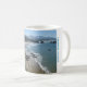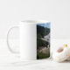 Caneca de café mostrada com um impressão da foto da costa de Oregon.