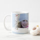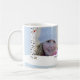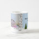 Um momento quieto em uma floresta nevado ajusta a cena invernal para esta caneca de café bonita e original da foto. Fácil personalizar com sua própria foto, mude então o fundo, a beira e o texto para serir suas necessidades. Desenho original pela mistura variada de coruja de noite, 2011.