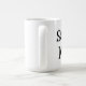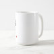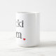 Caneca branca com texto preto e um coração vermelho pequeno