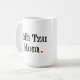 Caneca branca com texto preto e um coração vermelho pequeno