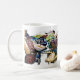 A caneca é de excelente qualidade, de bom peso e aparenta resistentência. O tamanho grande da caneca de 444 ml é muito prático, ela serve até para sobremesas. A alça é do tamanho certo para empunhadura, e oferece grande firmeza. A impressão ficou perfeita, a imagem ficou completamente nítida, e as cores vivas como na imagem do site.
