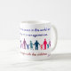 As citações dizem "se nós devemos alcançar a paz real neste mundo, e se nós devemos continuar uma guerra contra a guerra, nós teremos que começar com as crianças." por Gandhi. Imagem colorida dos adultos e das crianças que guardaram as mãos.