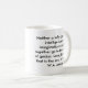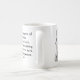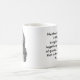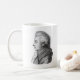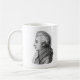 Uma caneca que caracteriza umas citações por compositor notável Wolfgang Amadeus Mozart, acompanhado de um retrato preto e branco no verso.