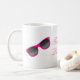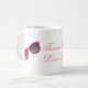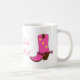 Caneca feminino do divertimento para alguma vaqueira que amar o rosa da cor, com gráficos de um par cor-de-rosa de botas e de óculos de sol de vaqueiro. O texto lê o rosa do amor das meninas de Texas, e pode ser personalizado para ler o que você quer.