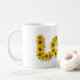 Irradie boas vibrações exibindo esta caneca de girassol amarelo com "amor". Modifique a cor do fundo para combinar com seu estilo atual.