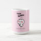 Comece seu aniversário com um sorriso! Esta caneca adorável apresenta um personagem brilhante em fundo rosa suave e pode ser personalizada com um nome e uma doce mensagem de aniversário curta. É um presente perfeito para amigos, crianças, ou qualquer pessoa que ame arte charmosa, do estilo kawaii. Ideal para beber café, chá ou cacau quente no estilo!